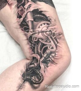 For a bolder, more masculine, or modern look, biomechanical tattoos are incredibly effective.
